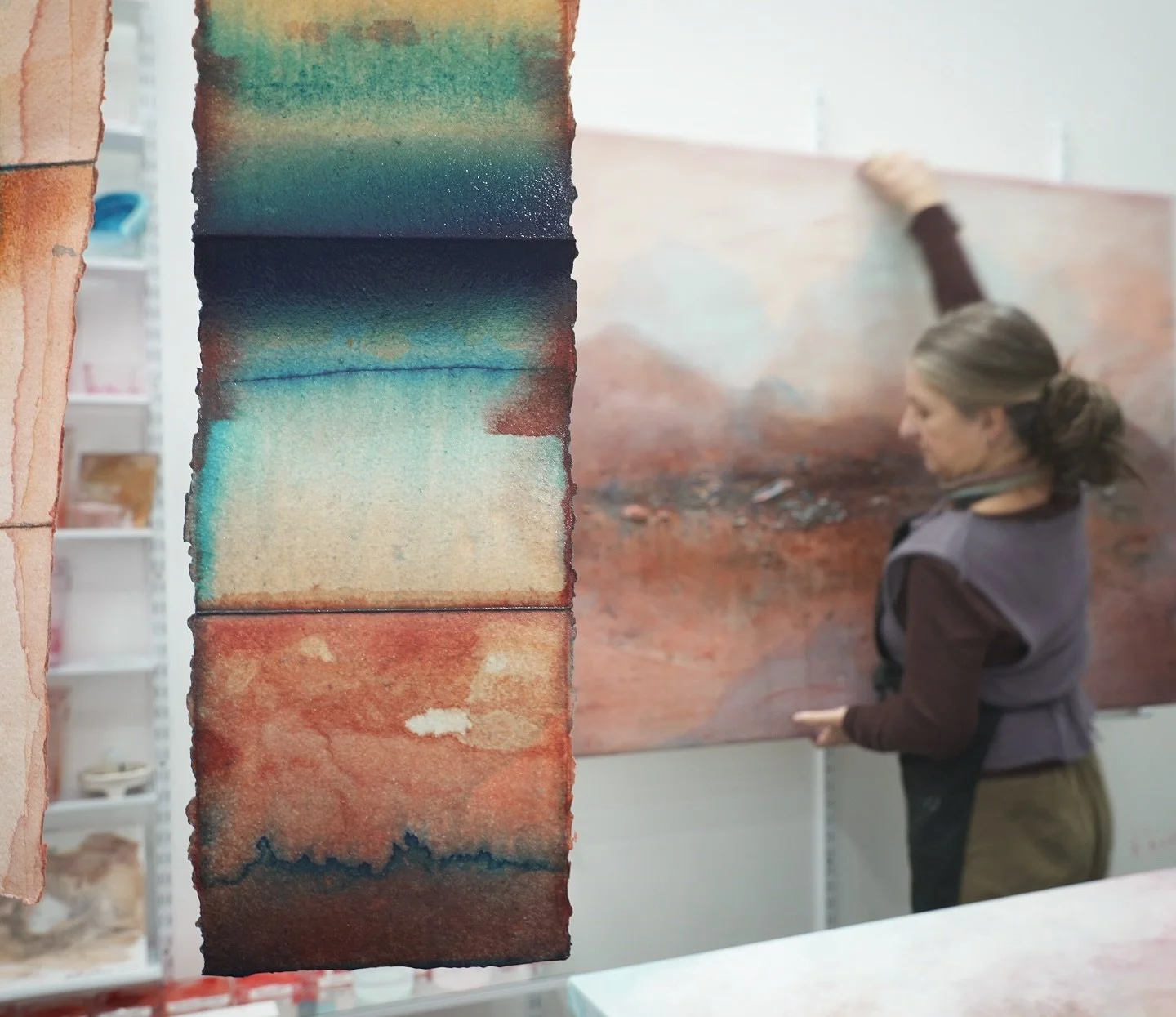 Gol Gol Layer Colour Observation #5 dry state and #6 wet state. Installation at Hazelhurst Regional Art Gallery Finalist at the Works on Paper Exhibition, 2019